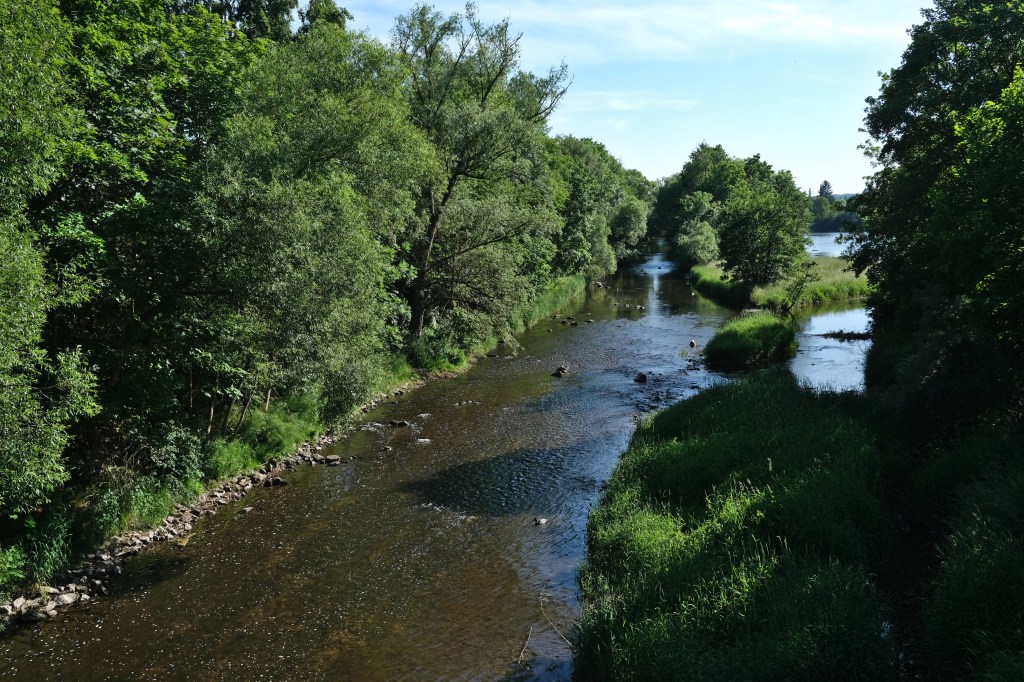 Il reste encore 15 km Ă faire pour arriver Ă Danaueschingen. La campagne est belle mais ces 15 km vallonĂ©s en valent 100. Ă 18h nous arrivons enfin au bord du Danube une toute petite riviĂšre oĂč nagent des canards.