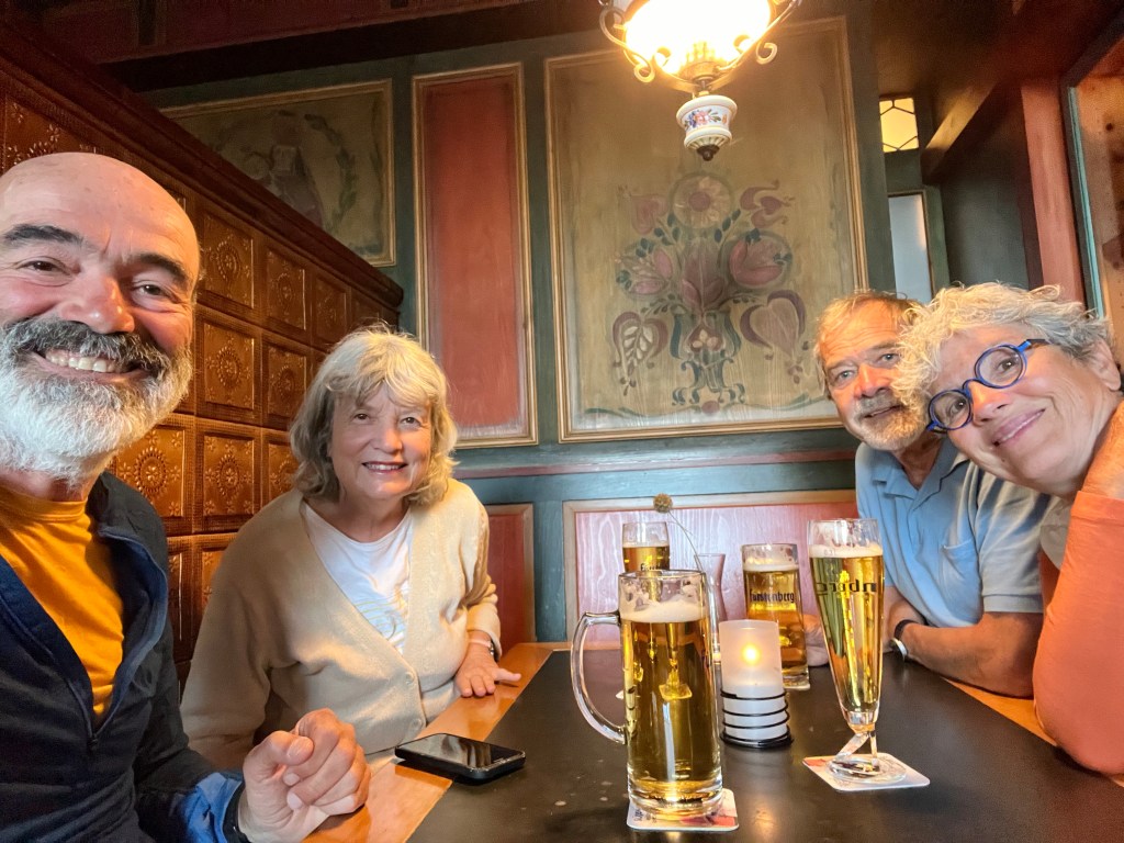 Et enfin, le biergarten dans un parc. Je ne bouge plus. Elisabeth et Manfred, les amis de Brigitte et dâHerbert, arrivent. Ils nous invitent Ă nous ressourcer dans leur agrĂ©able maison.