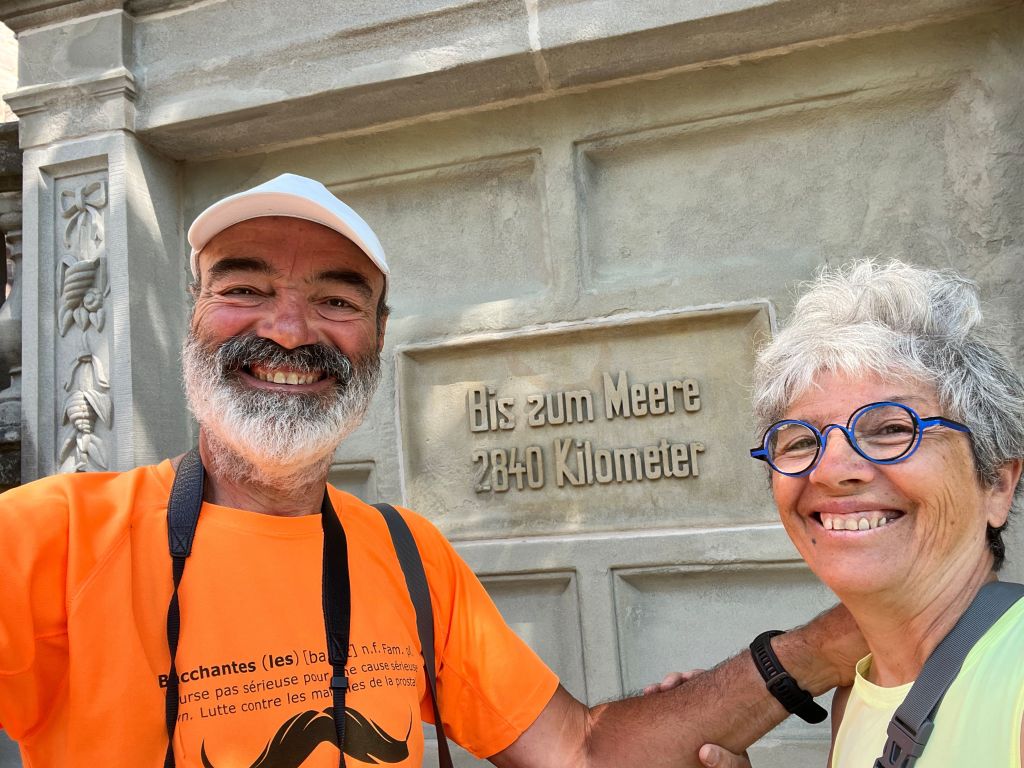 Pas pour trĂšs longtemps car un arrĂȘt Ă la source du Danube, du moins celle de Danaueschingen sâimpose. Cette source, est lĂ , devant nous, Ă nos pieds. Celui (ou celle, Danau est fĂ©minin en allemand) qui deviendra le grand fleuve majestueux, traversant dix pays, cette importante voie fluviale autour de laquelle une partie de lâhistoire de lâEurope sâest Ă©crite, nâest ici, quâun filet dâeau, un rond, une flaque, une source.