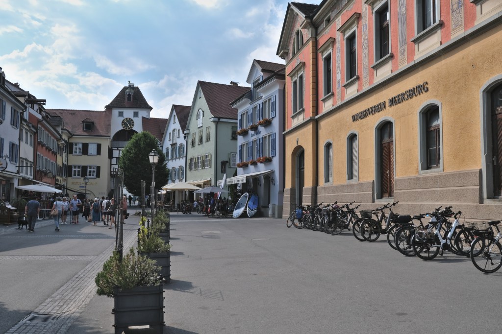 Nous irons jusquâau port traverser ce bras du lac et dĂ©barquerons Ă Meersburg. Petite ville entourĂ©e de vigne, on y fait du bon vin et on y visite son chĂąteau. Elle aussi, superbe dâarchitecture et mĂ©diterranĂ©enne nous la quittons avec regret pour poursuivre le long du lac.