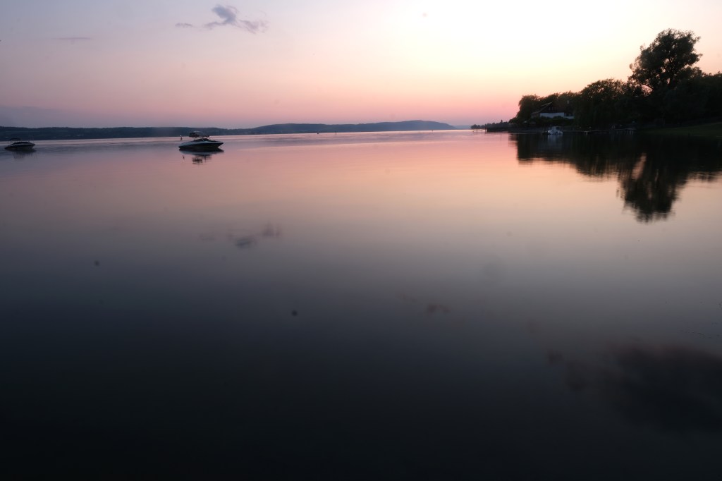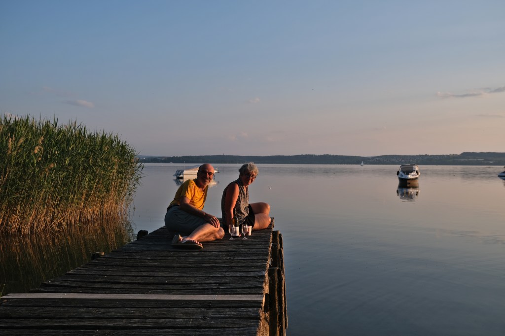 Au bord du lac, un ponton est idéal pour le repas du soir. Les reflets du soleil couchant éclaire notre diner de milliers de chandelles.