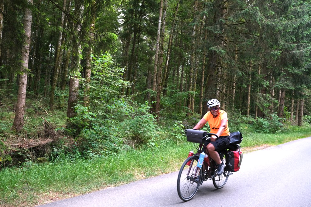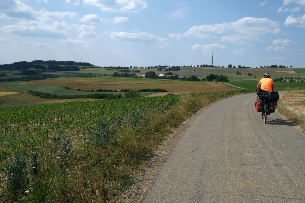 La fin de l’étape nous permet de passer cotĂ© Danube. Avec beaucoup de tĂ©nacitĂ© qui dĂ©cuple la joie et la fiertĂ© d’avoir rĂ©ussi, nous arrivons au sommet et dĂ©couvrons le bassin du Danube, la forĂȘt noire et plus loin l’Alsace. Un dernier regard vers le Rhin, le lac de Constance et au l’horizon, Ă  peine dessinĂ©es les Alpes suisses et nous plongeons vers Tuttlingen et le Danube que nous ne lĂącherons plus.