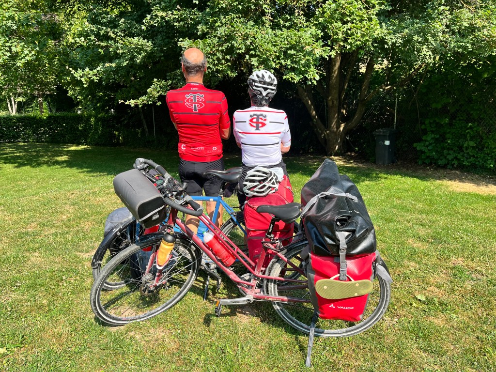 J’ai retrouvĂ© dans les commentaires de JPO, les enseignements de Muriel dans ses cours de yoga. C’est ce qu’on fait pour garder une position exigeante. Rester zen et ne penser qu’au moment prĂ©sent et se concentrer sur la respiration. J’ai appris ces attitudes avec Chantal en mĂ©ditation. Merci Chantal et Muriel je trouve vos conseils bien utiles aujourd’hui. Ainsi, petit Ă  petit les cĂŽtes sont suivies par des descentes qui prĂ©cĂšdent d’autres cĂŽtes jusqu’au camping et la biĂšre salvatrice. Car jusqu’à prĂ©sent le voyage n’est pas is plat que ça. Il y a juste une technique que je ne maĂźtrise pas bien, malgrĂ© les explications de JPO et Jean-Jacques, c’est passer les vitesses dans les cĂŽtes, sans les faire craquer. Aussi je suis preneuse de conseils personnalisĂ©s pour que mon vĂ©lo ne cri plus et que JJ arrĂȘte ses grimaces de souffrance quand il entend le bruit de la chaine.