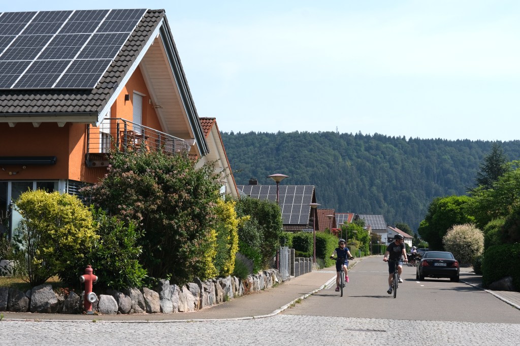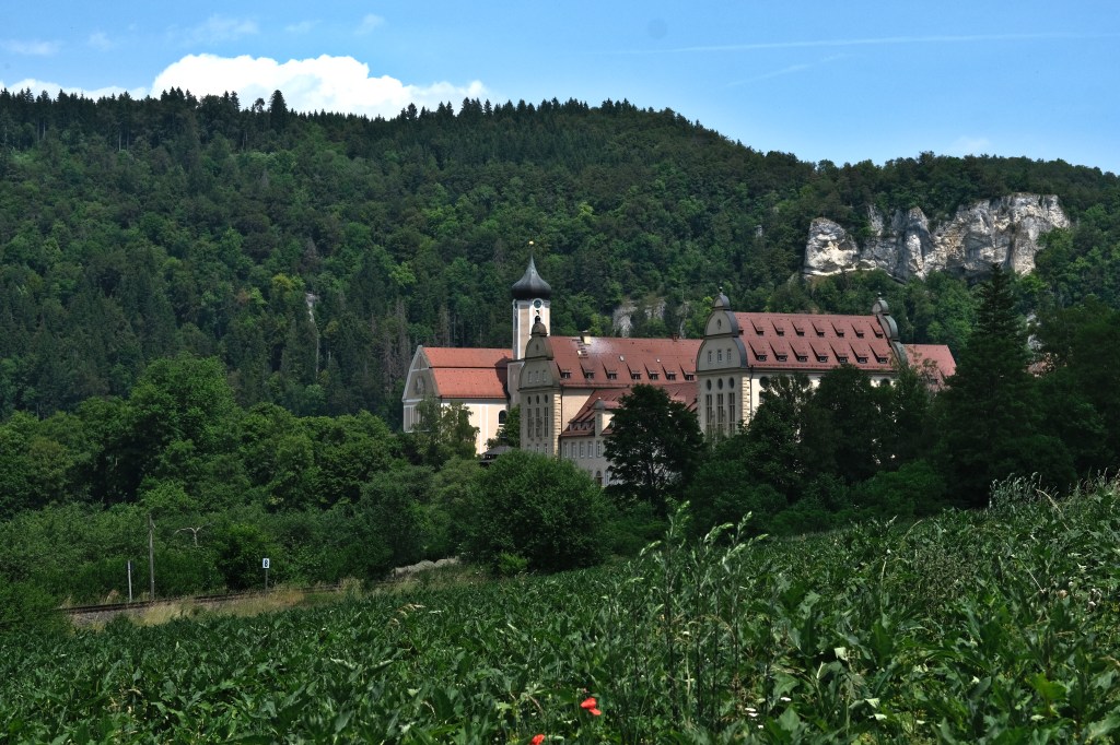 Nous attaquons enfin la descente du Danube. Dans la plaine, Ă  la sortie de Tuttlingen calme et guĂšre plus large qu’un torrent, le fleuve se prĂ©lasse. Les cigognes tournoient en vols circulaires ou recherchent dans les champs de quoi alimenter le petit dĂ©jeuner. Les traversĂ©es de villages nous montrent que la plupart des maisons modernes sont Ă©quipĂ©es de panneaux solaires, trĂšs rĂ©pandus. Ensuite le fleuve grossissant s’agite en rejoignant des gorges qu’il a mis un certain temps Ă  creuser. Au sommet des abbayes ou ermitages profitent d’une exceptionnelle vue.