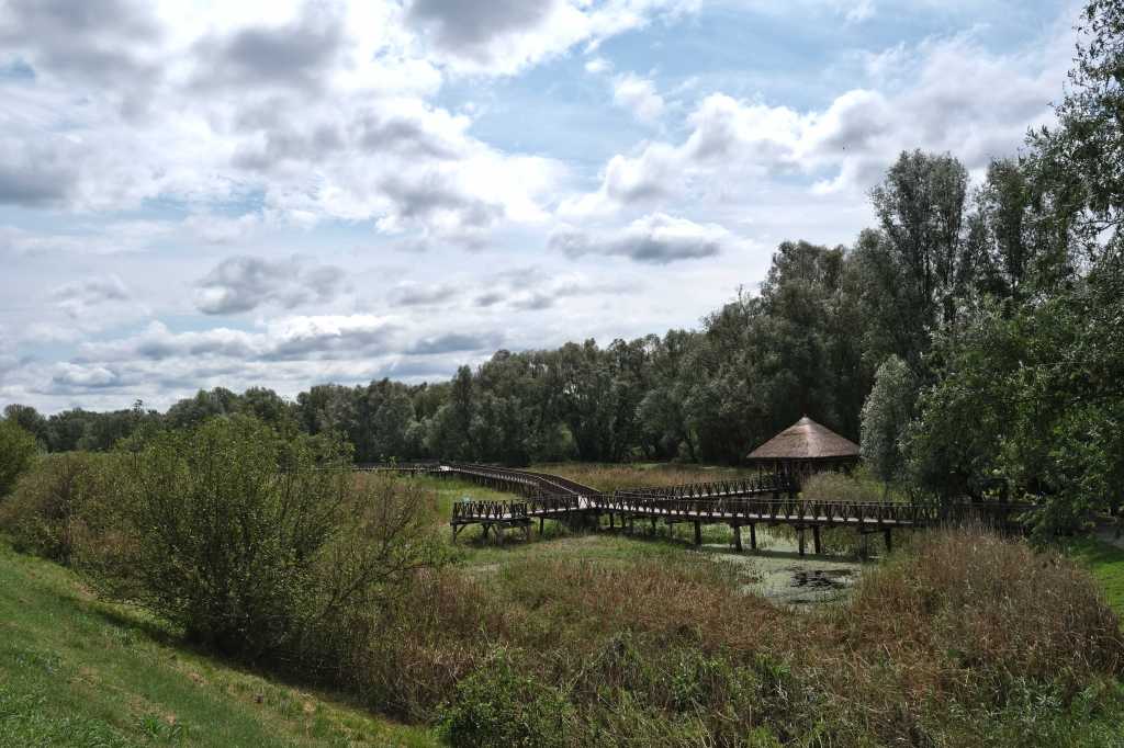 La traversĂ©e du parc de Kopacki-rit est un rĂ©gal. C’est une immense plaine inondable classĂ©e « RĂ©serve zoologique » dont le niveau d’eau dĂ©pend des crus du Danube et de son affluent la Drava. Des rĂ©seaux de passerelles ont Ă©tĂ© créés pour permettre au randonneurs de sillonner cette magnifique zone oĂč (toujours au loin) pullulent des oiseaux et notamment des cormorans.
