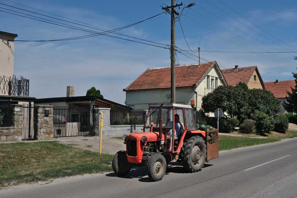 Il vend des fruits et des tomates au bord de la route. Il est gentil, pense que nous allons Ă Istanbul, car deux velos-routes se croisent Ă cet endroit, pose le sac de nos achats sur la balance, et faisant semblant de regarder le poids et de calculer annonce 500 dinars tout rond ! (4âŹ20) Il a appliquĂ© le tarif touriste, alors il glisse une poire et un piment dans le sac. Tout le monde est content. Belgrade nâest plus trĂšs loin.