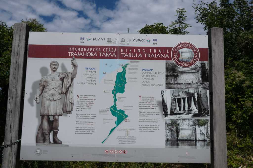Les Tables de Trajan, gravées et posées à cette époque sont visibles depuis le fleuve. Malheureusement, en ce lundi 7 aout, les bateaux ne circulent que sur le coté roumain et nous ne pourrons voir cette inscription commémorant la victoire, ni les vestiges des monuments construits à cette époque.