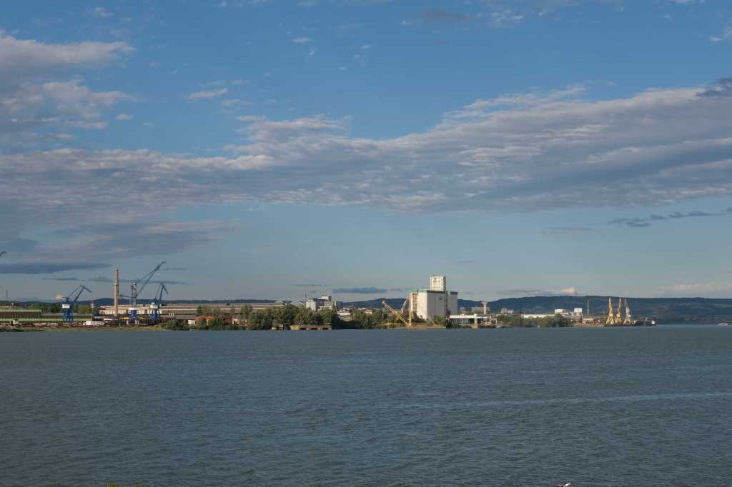 Accompagnés quelques kilomÚtres par un bolide serbe, nous arrivons à Klodovo, face aux grues des chantiers roumains.