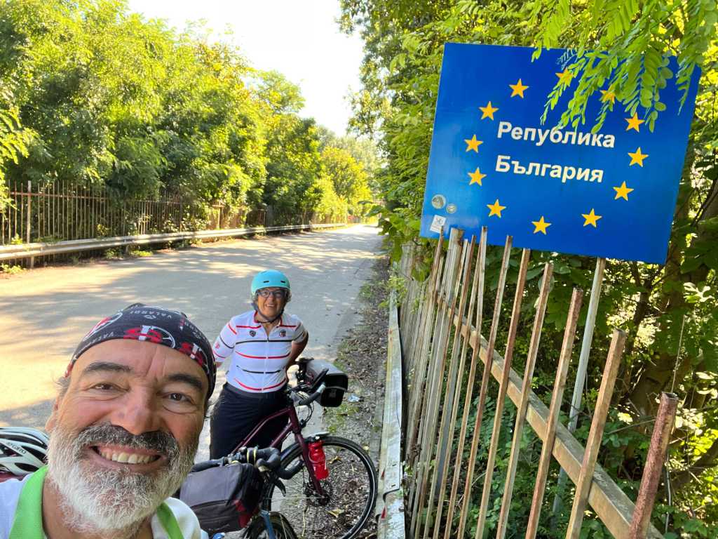 Bulgarie, retour dans l’Union europĂ©enne mais pas dans l’espace Schengen. La douane, sur cette petite route n’est qu’une formalitĂ© et les passeports sont controlĂ©s et tamponnĂ©s.