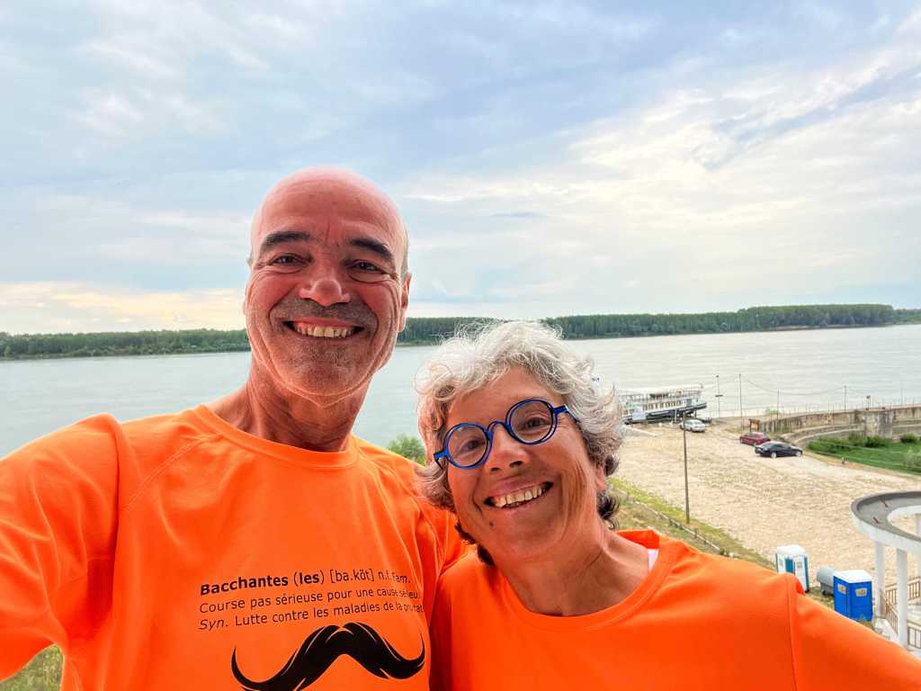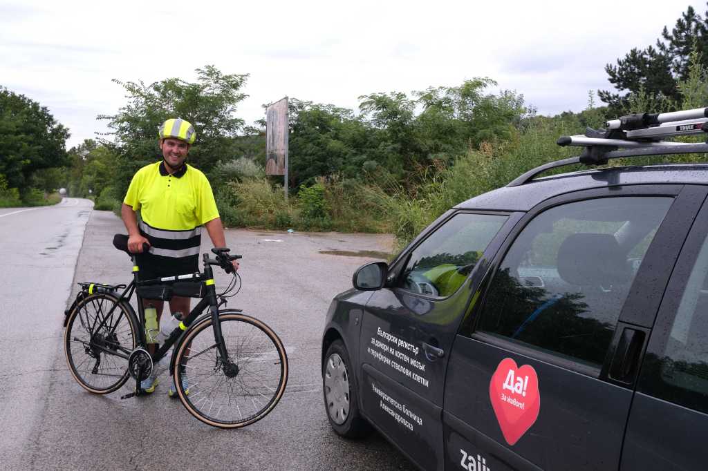Sur un dĂ©gagement de la route, façon parking, nous rencontrerons un cycliste et son accompagnateur. Atteint d’un lymphome il y a quelques annĂ©es et aujourd’hui guĂ©ri, ce cycliste rĂ©alise en une seule Ă©tape la traversĂ©e de la Bulgarie en suivant le Danube, la « Dunav Ultra ». Cela reprĂ©sente 740 kilomĂštres et 40 Ă 45 heures de vĂ©lo non-stop. Son objectif est de collecter des fonds pour la recherche mĂ©dicale contre les lymphomes. Bien entendu, je lui ai parlĂ© des « Bacchantes » la course que nous organisons le 5 novembre 2023 Ă Toulouse au profit de la recherche contre le cancer de la prostate. MĂȘme combat Ă 4000 kilomĂštres de distance.