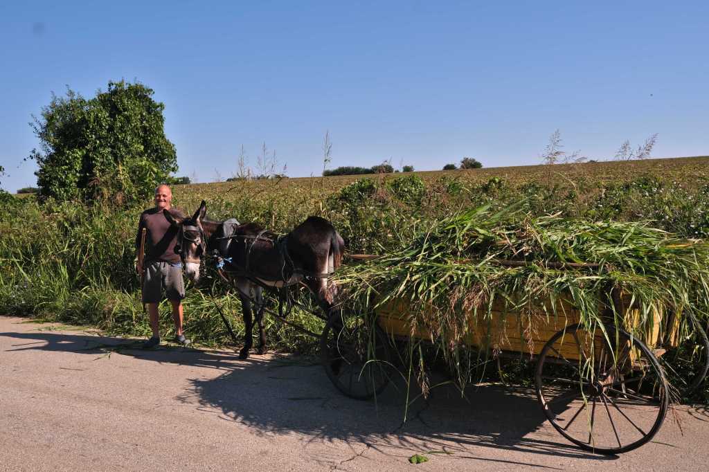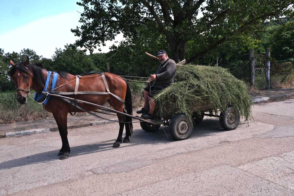 Sur la route il est frĂ©quent de croiser des carrioles tirĂ©es par des chevaux transportant toutes sortes de matĂ©riaux, du foin, la famille … Parfois ces rencontres sont sujets Ă  contraste.