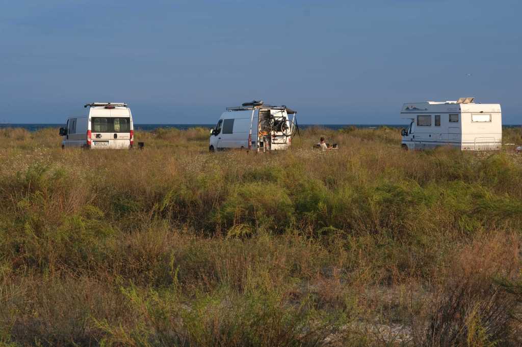 Une grande route, bordĂ©e d’une piste cyclable (ouf !) traverse des raffineries. L’ambiance ressemble Ă Fos sur Mer. A gauche un grand lac, Ă droite la mer, au milieu les tuyaux des raffineries, au loin les cargos naviguent. Nous passons donc la ville de Navodari sans un regard. Sur l’Ă©troite langue de terre entre la mer et un nouveau lac, point de raffinerie cette fois mais un autre monde nous accueille. Des kilomĂštres d’immeubles neufs ou en construction. Dix Ă©tages en moyenne de verre et d’acier sĂ©parĂ©s des plages par une route surchargĂ©e de voitures. La musique Ă©lectro retentit sans arrĂȘt. Les kilomĂštres de parasols et de bars nous accompagnent jusqu’au Camping Soleil oĂč nous poserons la tente.
