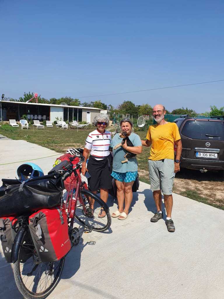 Trop bien ce sĂ©jour Ă Vadu. Un petit village dans le dĂ©sert Ă 6 kilomĂštres de la mer. Nous sommes dans une zone protĂ©gĂ©e. Des panneaux Ă l’entrĂ©e des pistes qui mĂšnent aux plages indiquent que l’accĂšs est interdit aux voitures et qu’il est interdit de stationner et de camper. Ce qui n’empĂȘche personne de planter une tente ou bivouaquer avec son van ou sa caravane. L’espace est immense, les plages quasi dĂ©sertes, les hĂŽtes de la guesthouse oĂč nous logeons particuliĂšrement gentils et prĂ©venants. Cette journĂ©e fut vraiment reposante. AprĂšs de longs au revoir, nous repartons les sacoches pleines de tomates, poivrons, raisins, pommes…. Une belle rencontre … encore une !