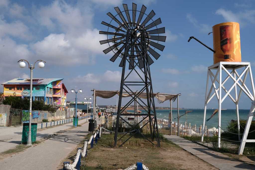 Plus tard en apercevant la mer avec, au premier plan, une petite église et, au loin sur la côte, des blocs d’immeubles je comprends le roumain qui se demandait où nous allions. « Ah Mangalia, vous allez passer à Neptune, Vénus, Saturne, c’est super !!! » Quelle imagination ces promoteurs pour baptiser en nom de planètes des piscines et petit port au pied d’immeubles haut de 15 étages en bord de mer.