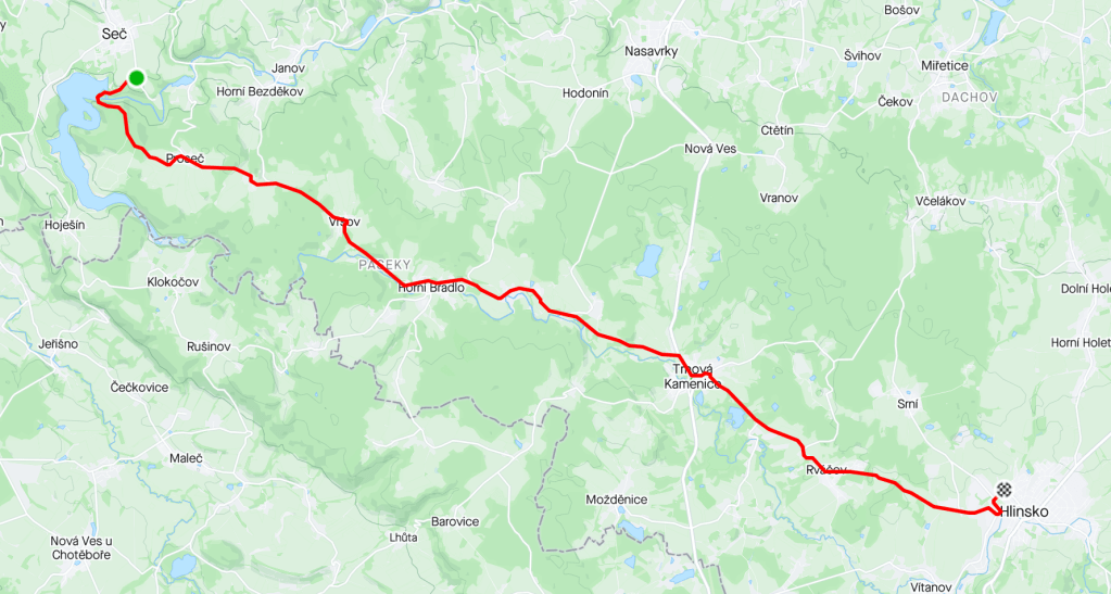 Le programme des deux prochaines Ă©tapes semble particuliĂšrement difficile. En effet nous devons quitter la BohĂšme pour traverser la rĂ©gion montagneuse de la Vysocina. Certes les sommets les plus hauts n’excĂšdent pas 900 mĂštres d’altitude mais les dĂ©nivelĂ©s sont trĂšs importants. Nous avons un aperçu de ces paysages de collines, de lacs et de prairies sur les 23 kilomĂštres de cette Ă©tape.