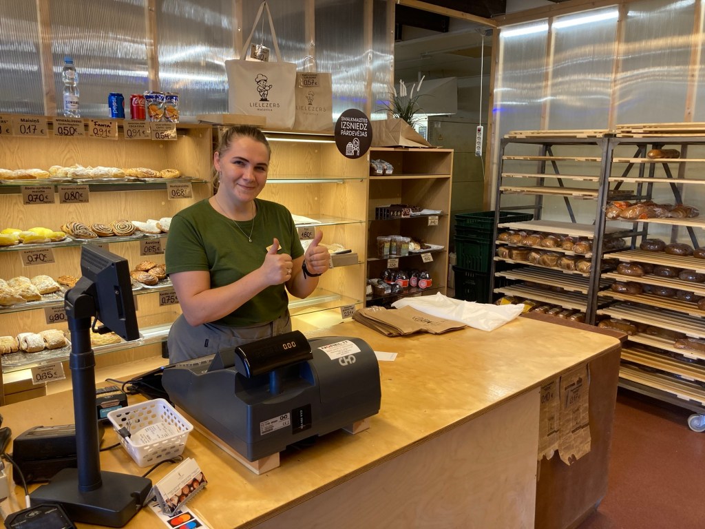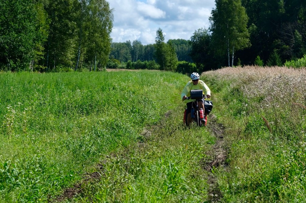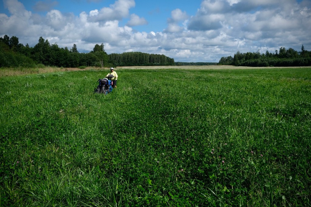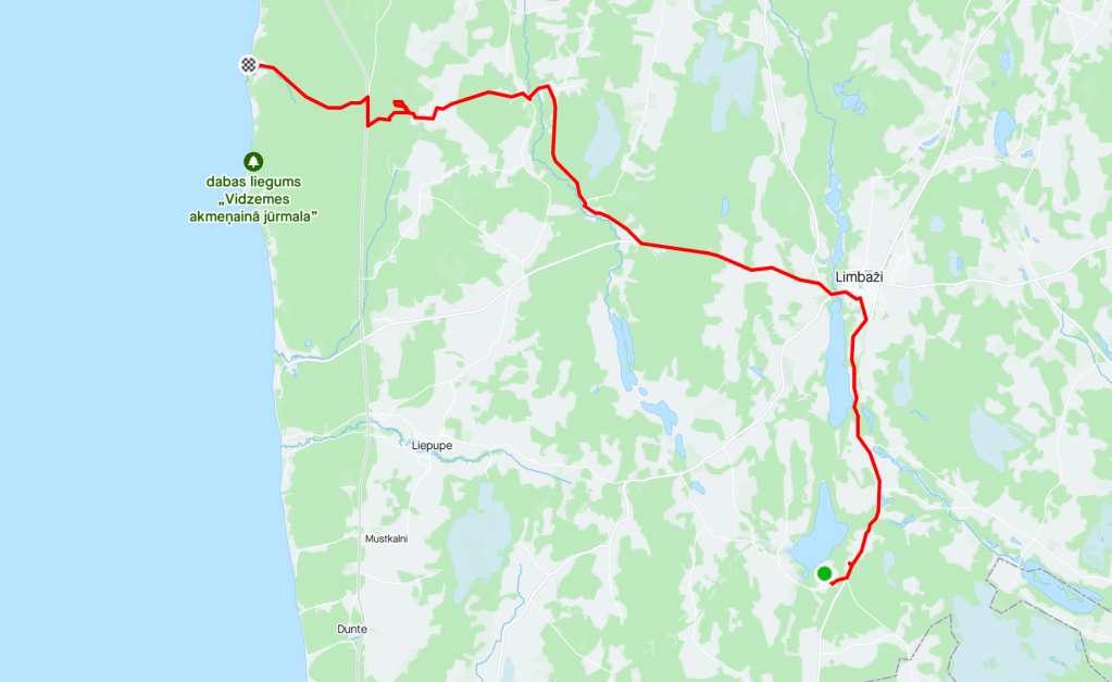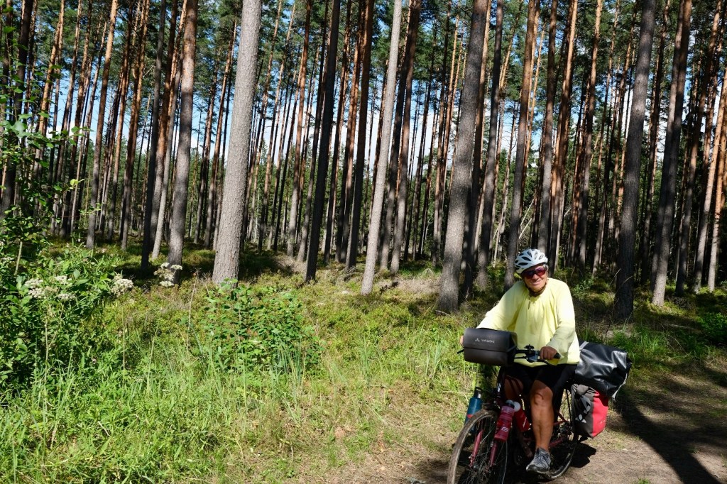 Deux kilomĂštres plus loin nous retrouverons la nationale en direction du camping de Veczemji, au bord de la plage. Avant de l’atteindre nous avons eu l’agrĂ©able surprise de rencontrer Ania.