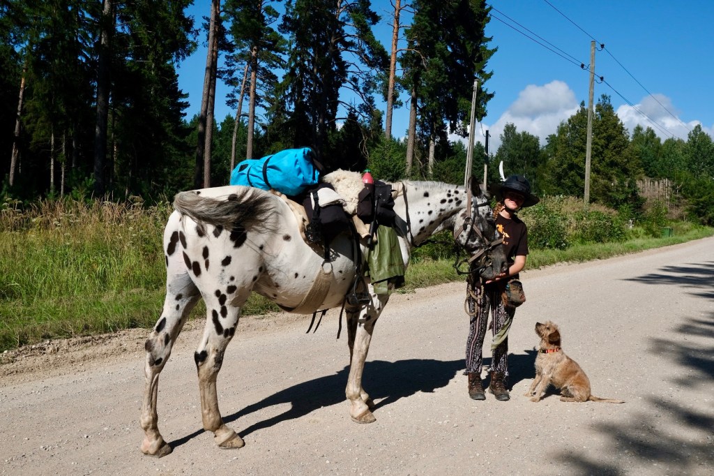 Ania est polonaise et voyage avec son cheval Mango et son petit chien Oro. Tous trois partis d’Oslo en NorvĂšge, ils ont marchĂ© jusqu’Ă Stockholm. Un ferry les a ensuite dĂ©posĂ© Ă Tallinn et, tranquillement, telle une Don Quichotte au fĂ©minin, rejoindra sa Pologne natale aprĂšs deux mois de pĂ©rĂ©grination. (son Instagram jestem_wiatrem)
