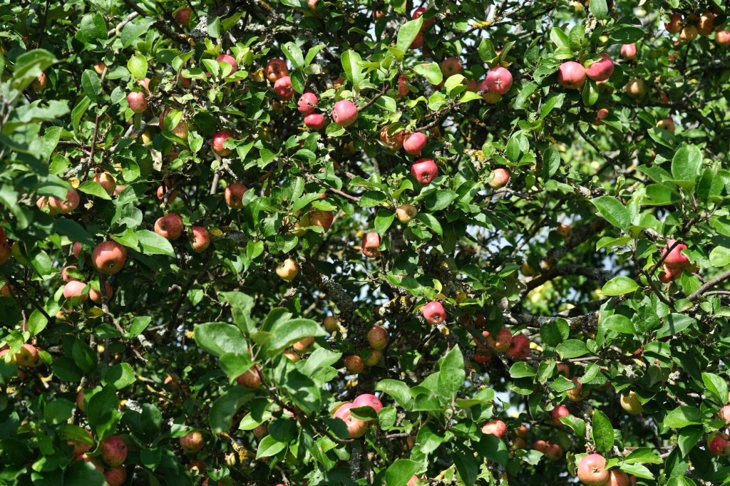 Ici les vaches ne se coupent pas la frange et, couverts de pommes, les pommiers garnissent les haies, peuplent les jardins, se mélangent aux broussailles dans les champs, longent les routes et nous n’avons pas vu de vergers tels que nous les cultivons sous nos latitudes.