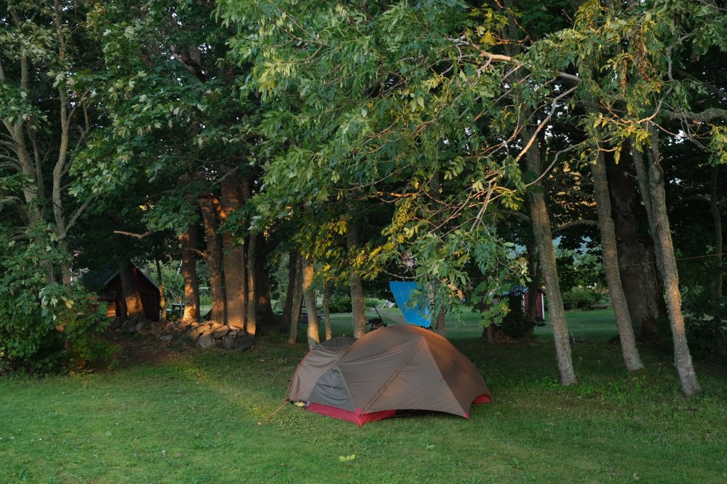 Ce soir à Kuressaare nous n’avons pas pu monter la tente dans le petit camping de la ville. Une pièce de la celle-ci a cassé et nous n’avons pas de solution avant Tallinn. Coco se réjouit déjà de dormir au sec et au chaud pour la fin du voyage en Estonie.