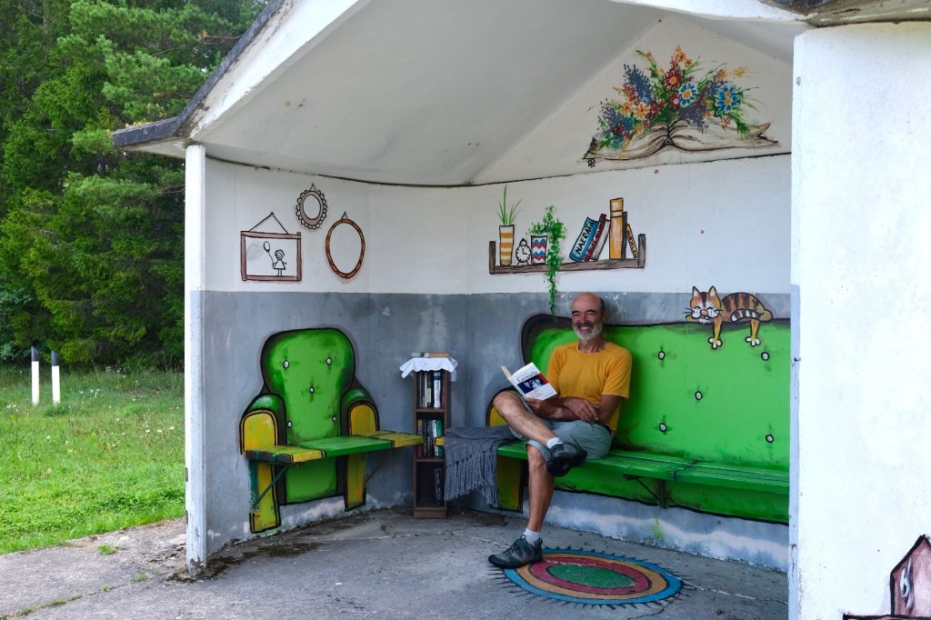 Les abris-bus sont décorés et bien entretenus. Ils donnent envie d’attendre la correspondance soit couvert d’un plaid, un livre à la main, parfois, les deux à disposition, soit en conduisant un combi VW.