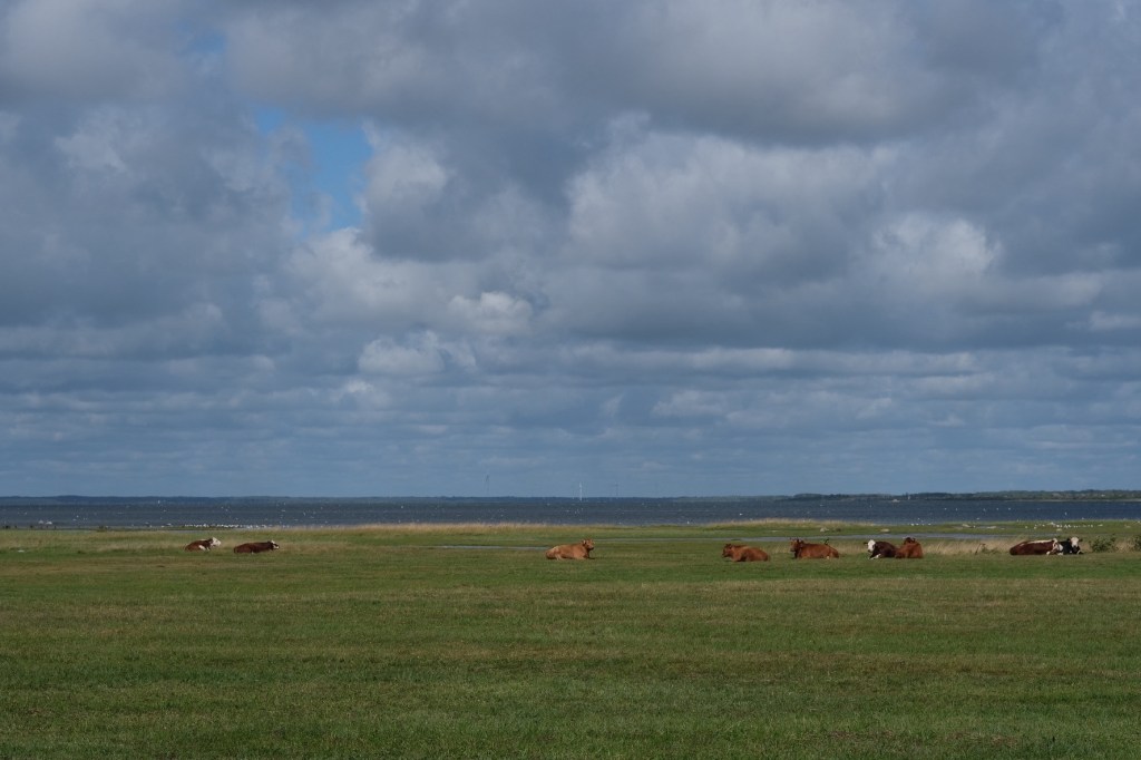 Mais après 95 kilomètres d’effort, nous en viendrons à bout. Les vaches s’en foutent et ruminent sur leur plage en herbe.