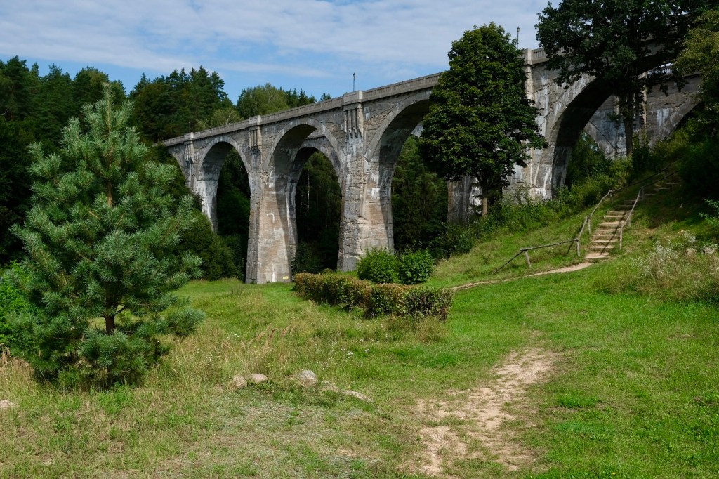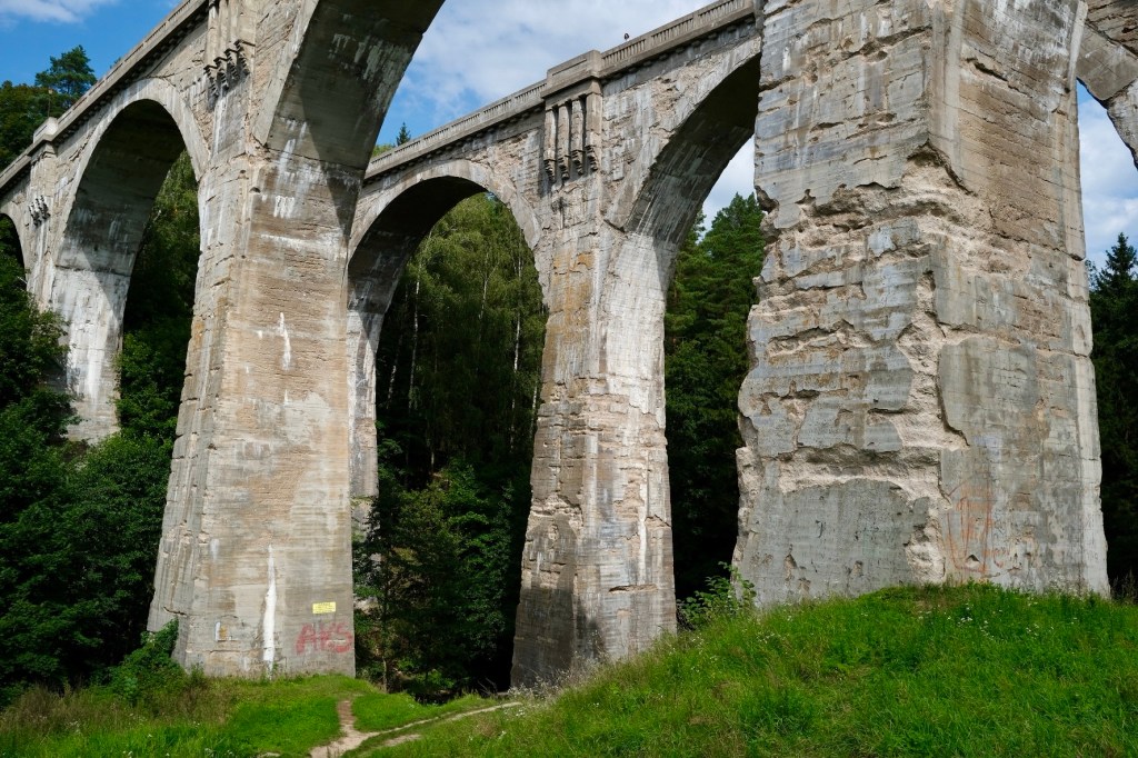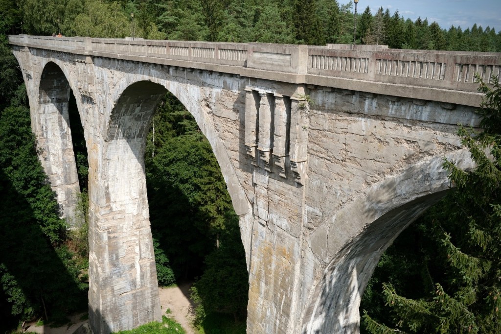Un ancien pont ferroviaire, construit en 1925 attire les touristes, les marchands ambulants leur vendent des hot-dogs, des gaufres et des glaces. Le minibus les attend, la promenade peut continuer.
