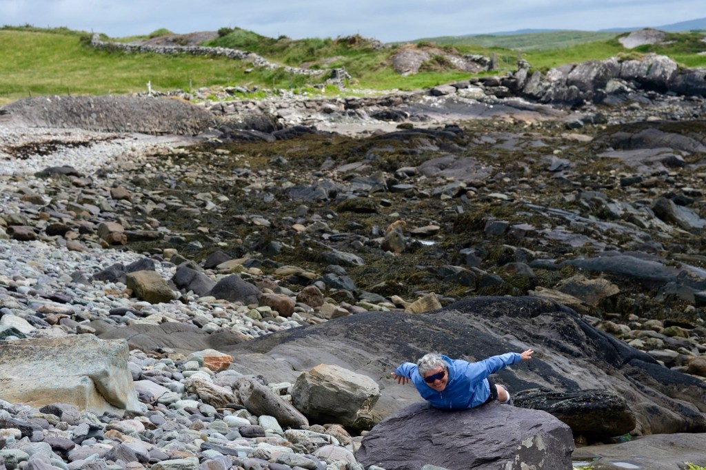 La fin de l’étape d’hier fut longue. Les montées et descentes n’en finissaient plus. Rucio, le vélo bleu de JJ, patientait, faisait quelques aller-retours pendant que Coquelicot, le beau vélo rouge de Coco avait du mal à suivre. L’Irlande, ce n’est ni le Danube, ni les Pays Baltes. C’est beau, c’est vert, les irlandais sont chaleureux mais rien n’est plat.