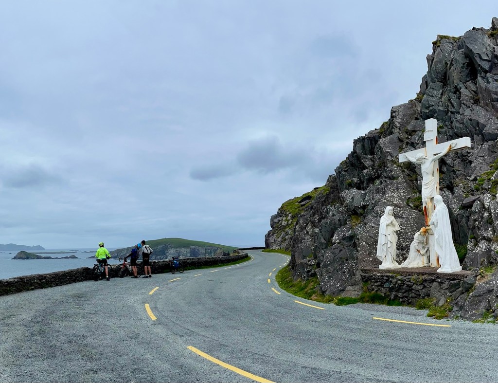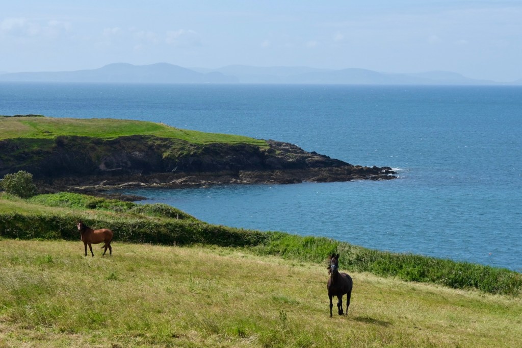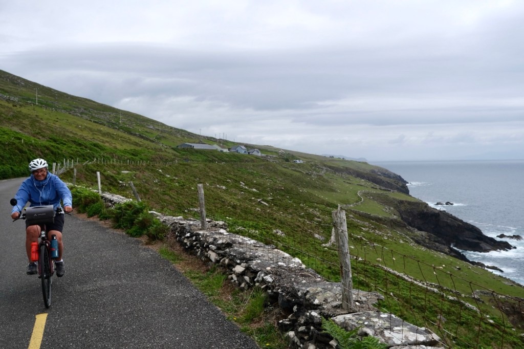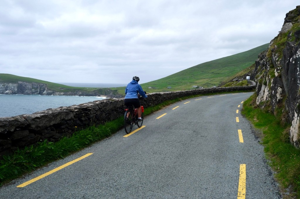 Après avoir quitté l’hébergement de Mary, qui restera un des bons souvenirs du voyage, nous allégeons Coquelicot et Rucio au camping de Dingle. On retrouvera les sacoches ce soir.