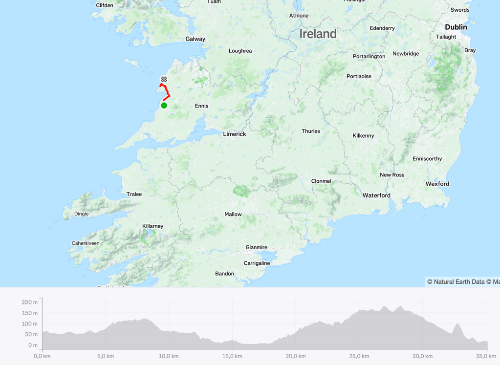Les pubs se touchent dans la rue principale de Miltown Malbay. La petite ville se targue d’être un haut lieu de la musique traditionnelle irlandaise. Nous aurions bien passé la soirée dans l’un de ces pubs hier soir mais le Stade Toulousain jouait son titre. Au bout du suspense et après les prolongations les joueurs rouge et noir pouvaient brandir le bouclier de Brennus pour la troisième fois consécutive.