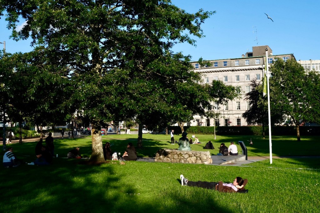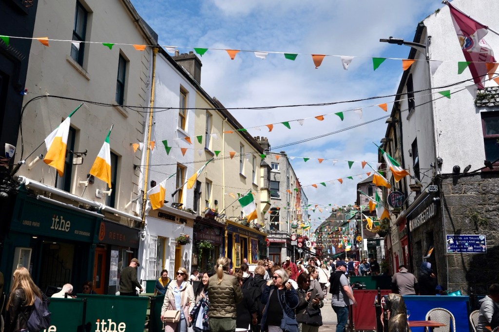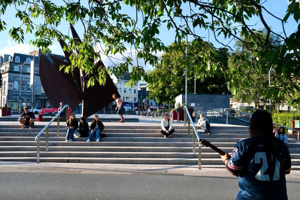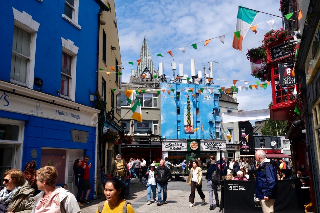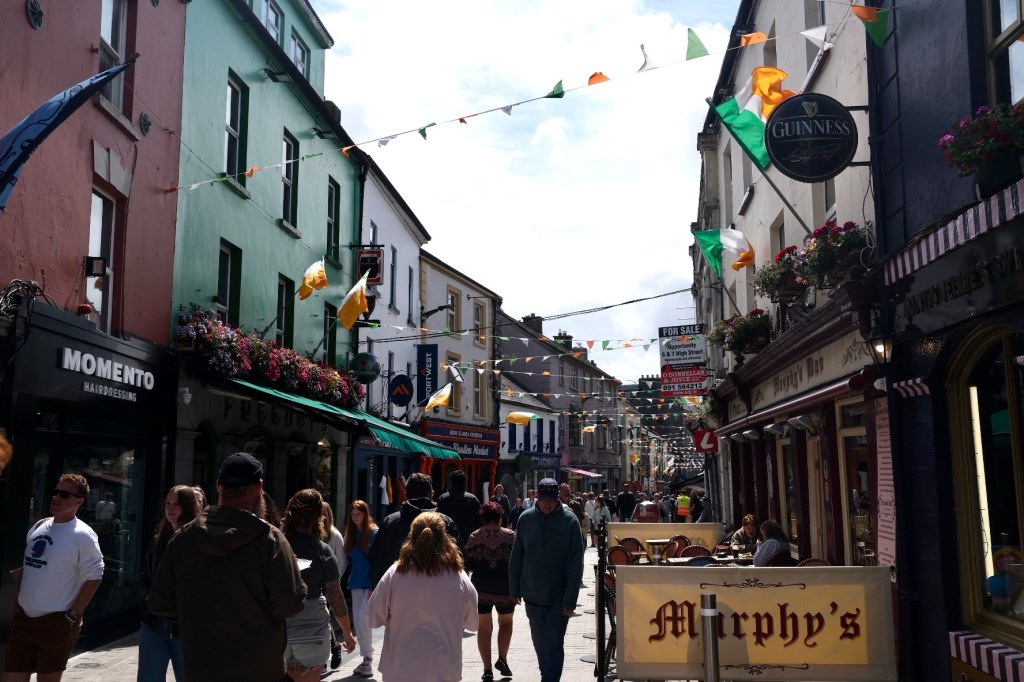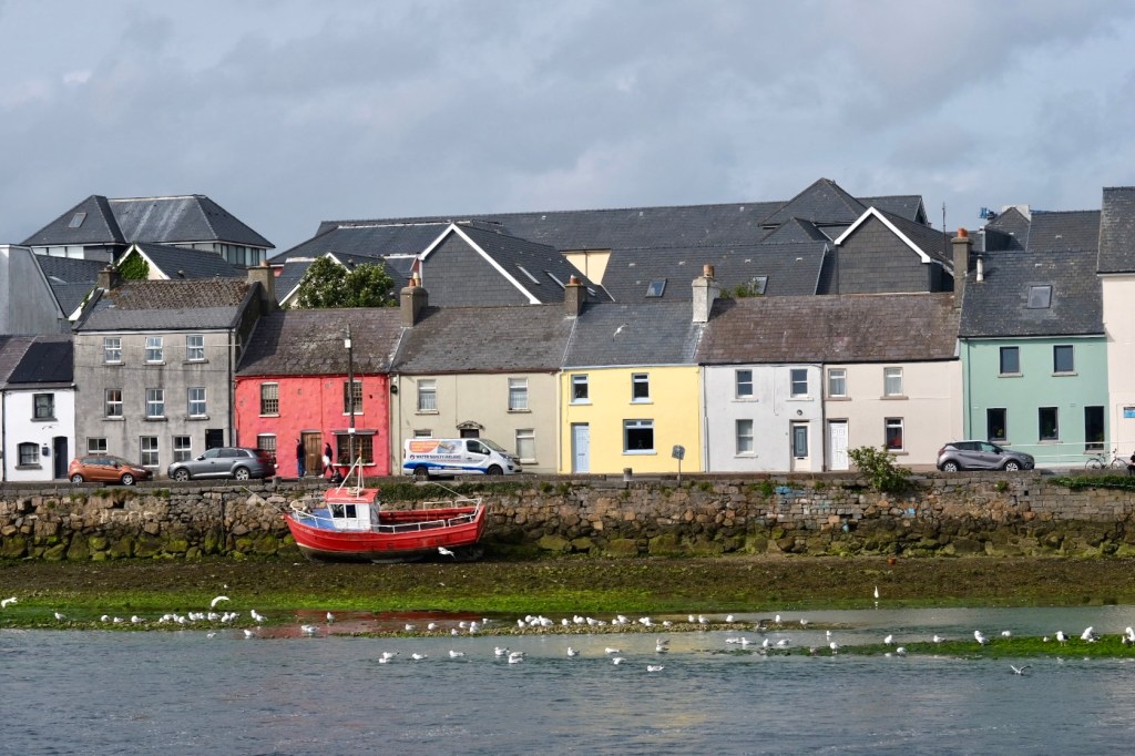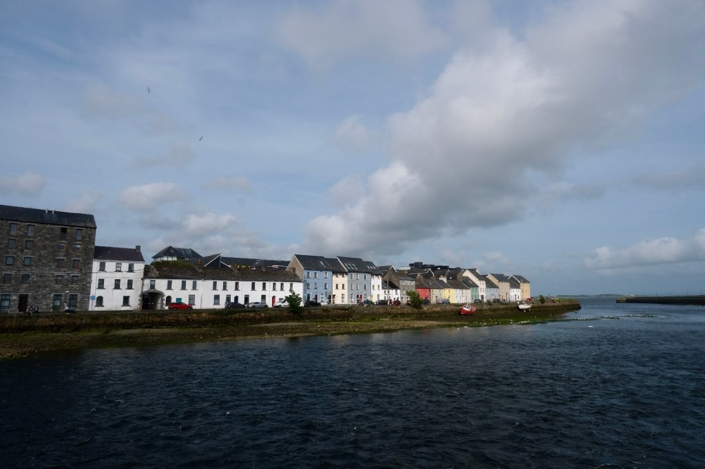 Ensuite le long de la rivière Corrib, courte de 6 kilomètres mais au débit très important quelques pécheurs tentent d’attraper des saumons. La grande cathédrale de pierres grises regarde s’écouler le courant vers l’océan. Il fait beau. C’est agréable de flâner sur Eyre Square où JF Kennedy en 1963 fit un discours improvisé sur les origines irlandaises et de Galway de nombreux citoyens de Boston. En fin d’après-midi, longer la digue jusqu’au bout du port, regarder nager et même parfois sauter un groupe de dauphins et enfin retourner sur Quay street, la rue principale, « the latin quarter of the City » où s’alignent, serrés les uns contre les autres la majorité des pubs très nombreux de la ville.