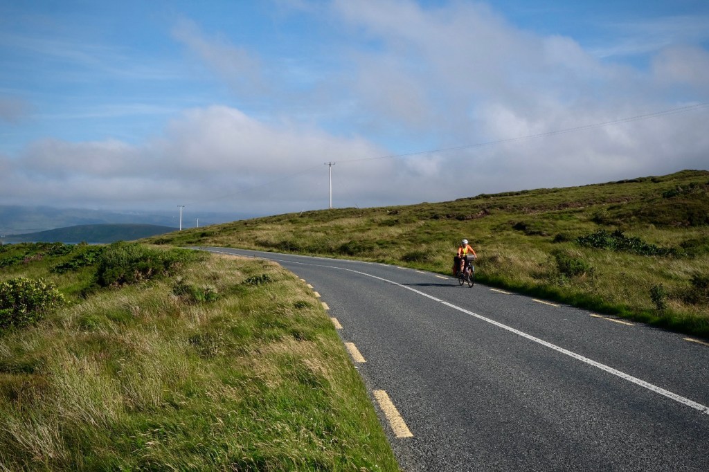 Cheminant ensuite au milieu des tourbières, parfois longeant l’océan elle réserve quelques belles vues, magnifiées par le soleil et son ciel bleu.