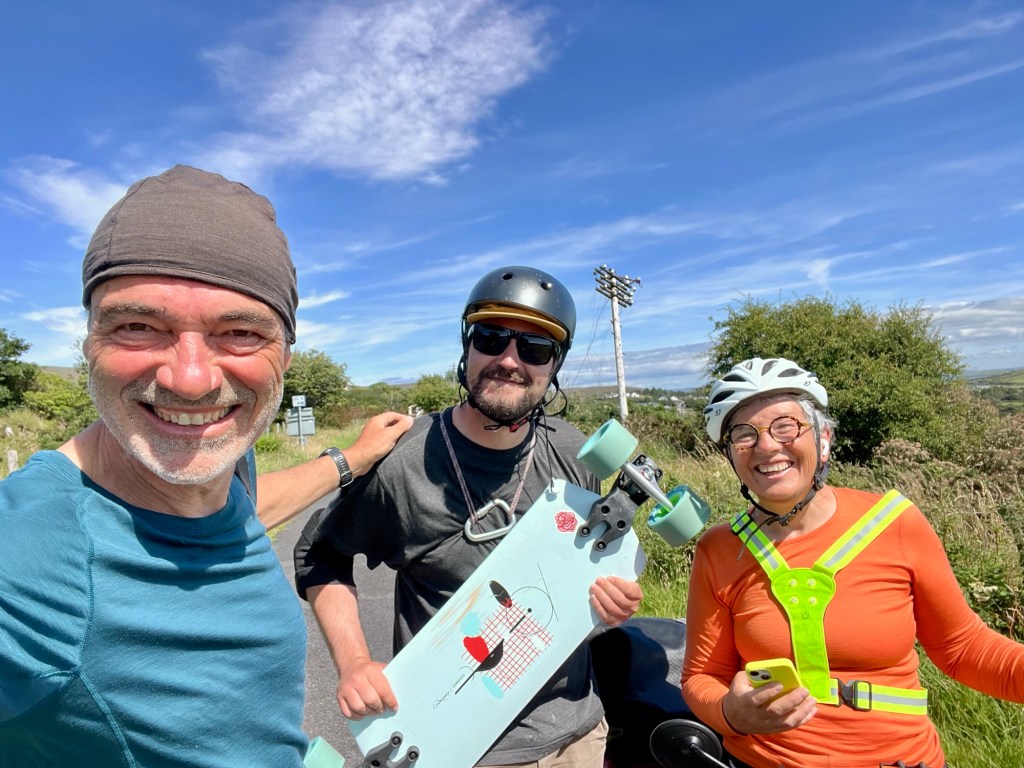 On l’avait vu au départ de Westport, il nous rejoint en skate-board. On se retrouve, on discute.