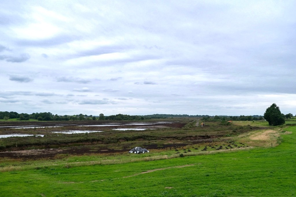 Au retour la toute petite route parallèle empruntée pour éviter les voitures nous fait traverser des centaines d’hectares de tourbières creusées, labourées. Ces champs de sphaignes sont détruits. Ces mousses en retenant l’eau ont permis pendant des milliers d’années la décomposition des matières végétales et la formation d’épaisses couches de tourbes. Les pelles mécaniques creusant ces tourbières nous éloignent des images de l’irlandais avec son espèce de bêche carré prélevant ses cubes de tourbe. Une fois séchés, il les mettra dans son poêle ou sa cheminée pour chauffer le pub ou sa maison. En effet, pendant des siècles, les tourbières ont fourni de la tourbe pour le chauffage domestique et la cuisine.
