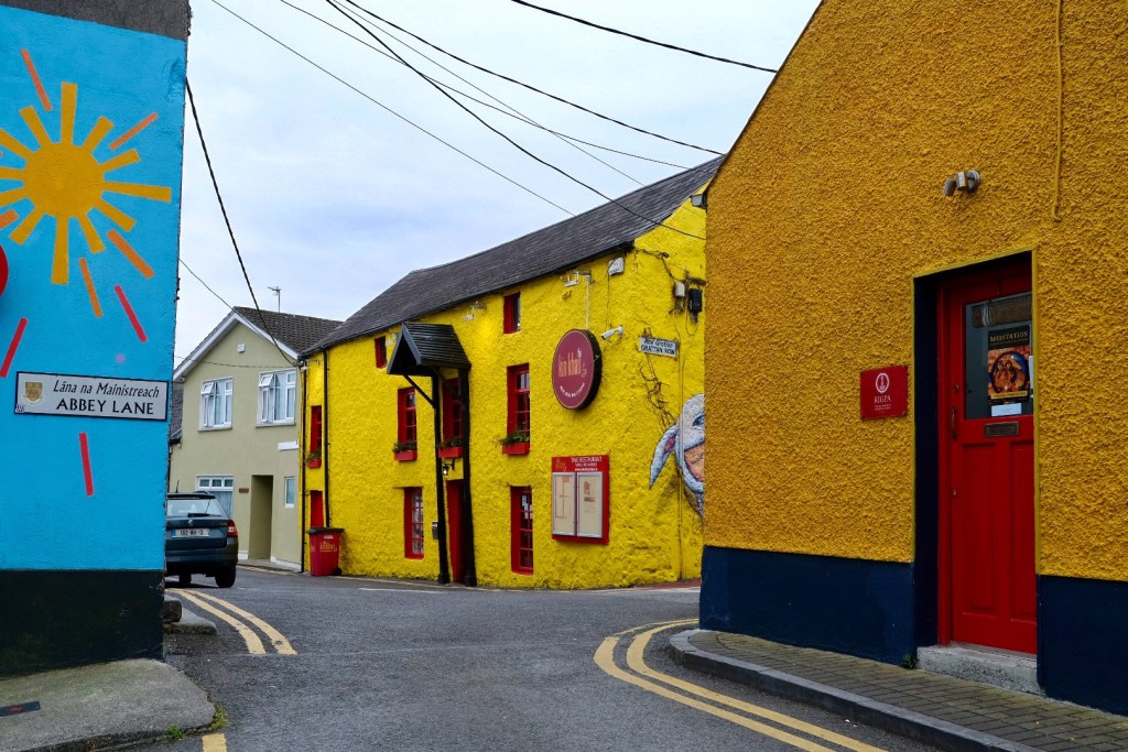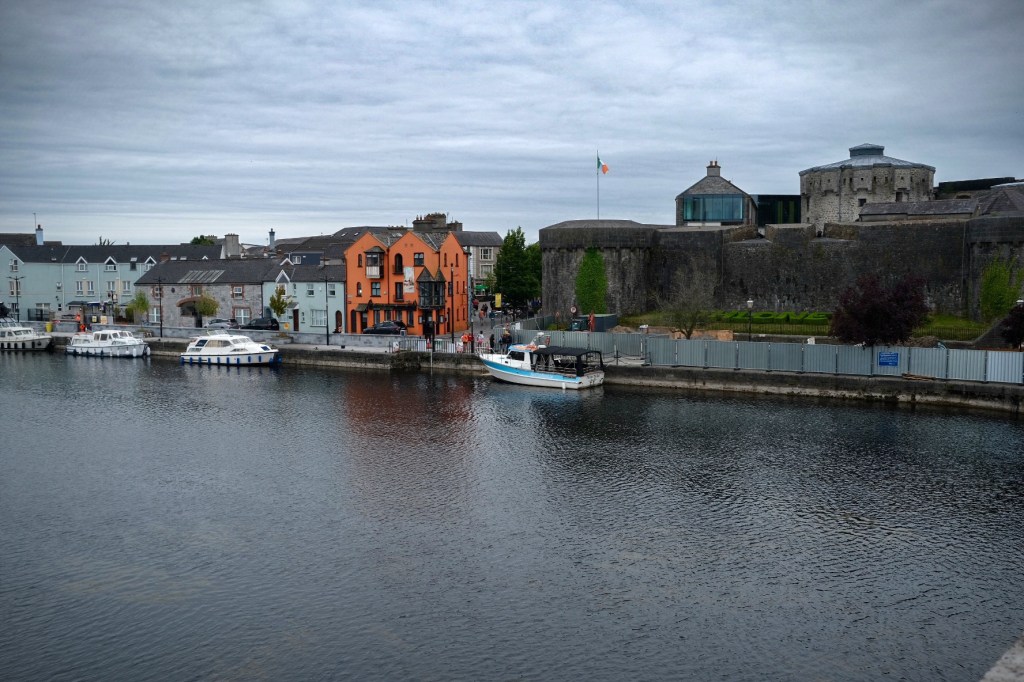Retour à Athlone, les maisons colorées se remarquent à coté du château de pierres grises.
