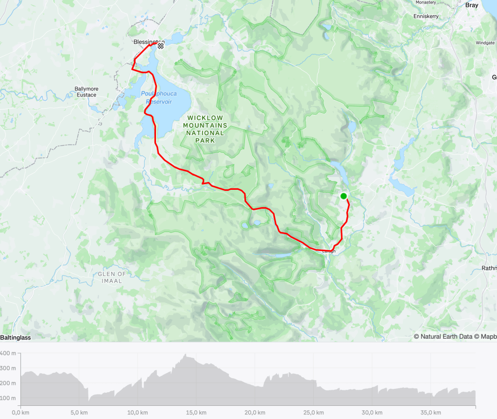 En approchant de Blessington, ville étape du jour, un immense lac apparait. La vue est magnifique. Il ne nous reste plus qu’à plonger vers la ville.