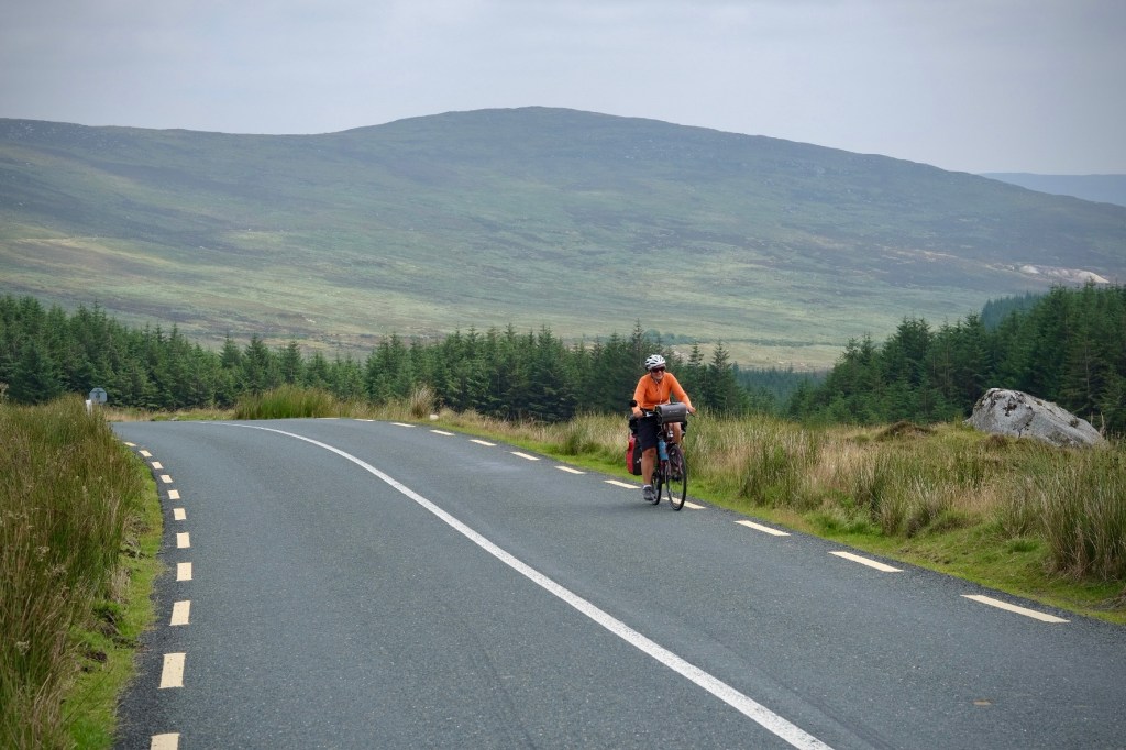 La voie est large et l’ascension du Col de Wicklow passe plutôt bien. Une longue pause sur une aire de « point de vue » nous permet de discuter avec un couple de bretons.