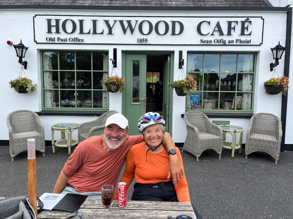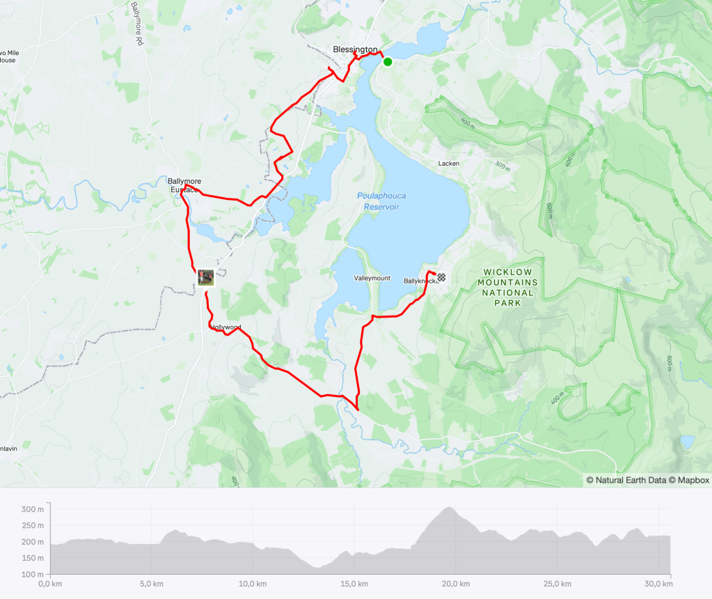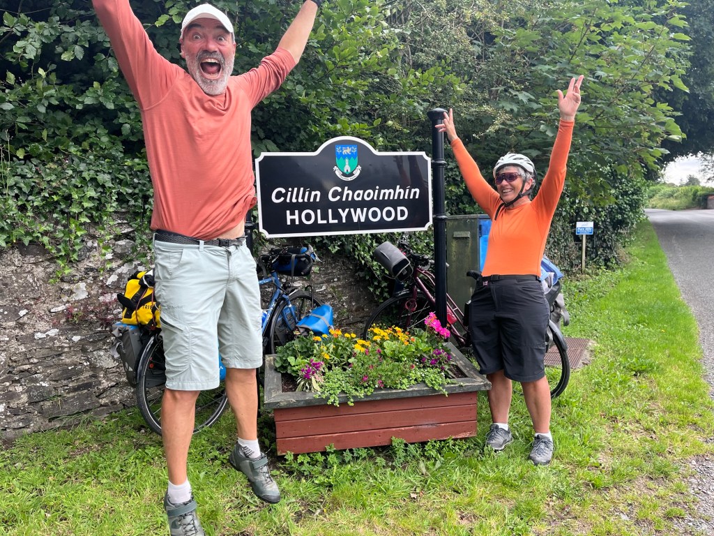 Coco a repéré depuis hier le village d’Hollywood, lui aussi proche du lac. Alors la décision est prise : Nous acheminer tranquillement vers la Russborough house, continuer autour du lac, s’arrêter à Hollywood pour un selfie et revenir à Blessington pour un deuxième bivouac.