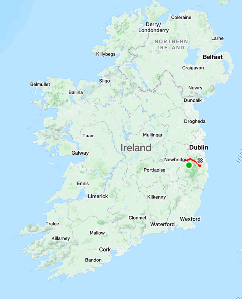 Après ce bivouac calme et agréable, nous poursuivons vers Blessington où l’office du tourisme nous accueille à nouveau pour recharger nos portables le temps de boire un café et de recharger nos sacoches au supermarché du coin.