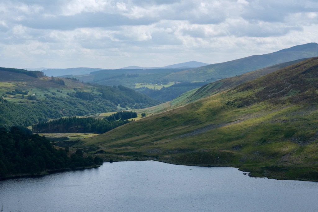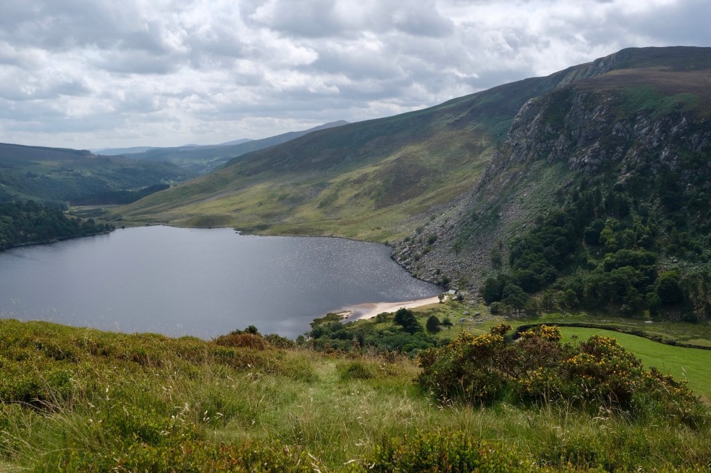 Arrivés au col, l’ascension n’est pas terminée car après une descente raide de trois kilomètres, nous gagnons le droit de remonter au même niveau sur la même distance. Après ces efforts, ce grand toboggan nous offre une superbe vue sur le lac « Lough Tay ».