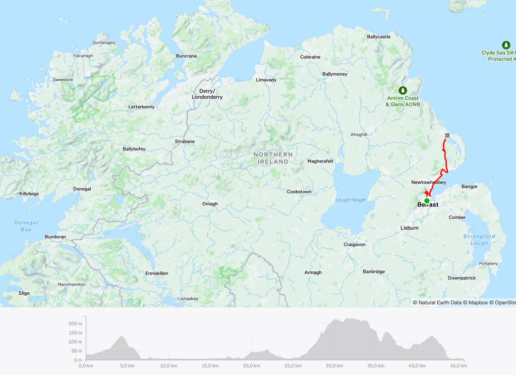 Très rapidement la route s’élève pour rappeler à nos muscles que les vacances sont terminées. Elle nous amène au château de Belfast.