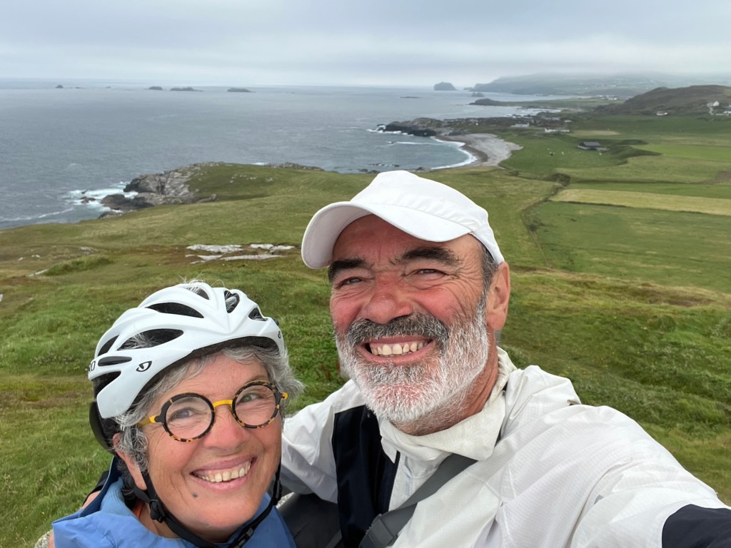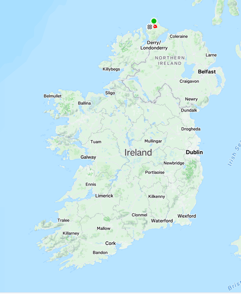 Après une nuit tranquille dans notre champ ce matin est encore beau mais très nuageux. On attend tranquillement que les nuages s’élève avant de rejoindre le point le plus septentrional de l’Irlande, le Malin Head. Sa position géographique stratégique lui confère un rôle important pour l’armée et les communications. Pour l’armée c’est évidement un point de guet important, de nombreux navires pouvant croiser le cap. La tour situé à la pointe fut une tour de guet mais aussi une tour de communication. Le Titanic utilisa la radio sans fil Marconi, avec un relais sur la tour pour communiquer lors de ses essais en mer.
