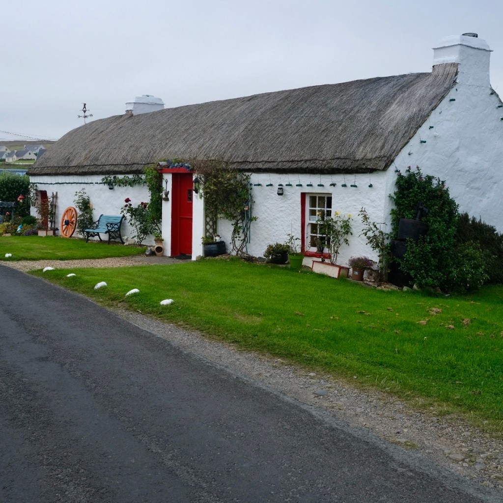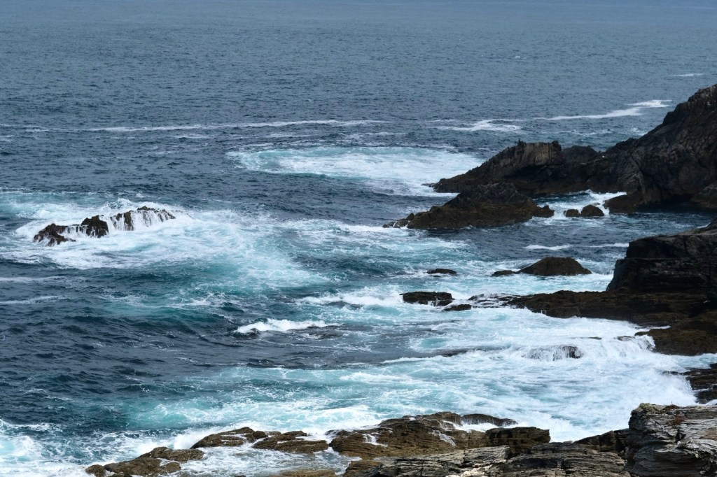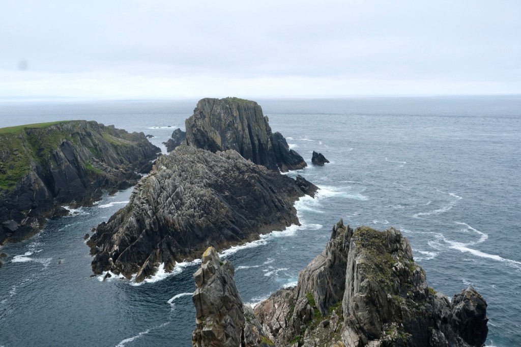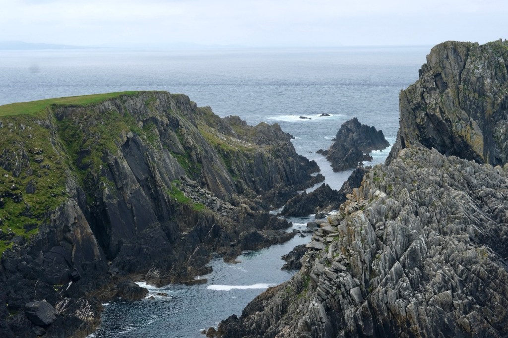 Seul l’océan se trouve entre ici et les Amériques, Malin Head constitue donc un point de repos bienvenu pour les oiseaux migrateurs et les eaux tourmentées et poissonneuses attirent les baleines, les dauphins et d’autres espèces dont les routes de migration doivent contourner ce point. Nous n’aurons aperçu que quelques fous de bassan, rasant les vagues et deux macareux au bec coloré. On ne se lasse pas de la beauté de ces rivages déchiquetés, des couleurs changeantes des roches.